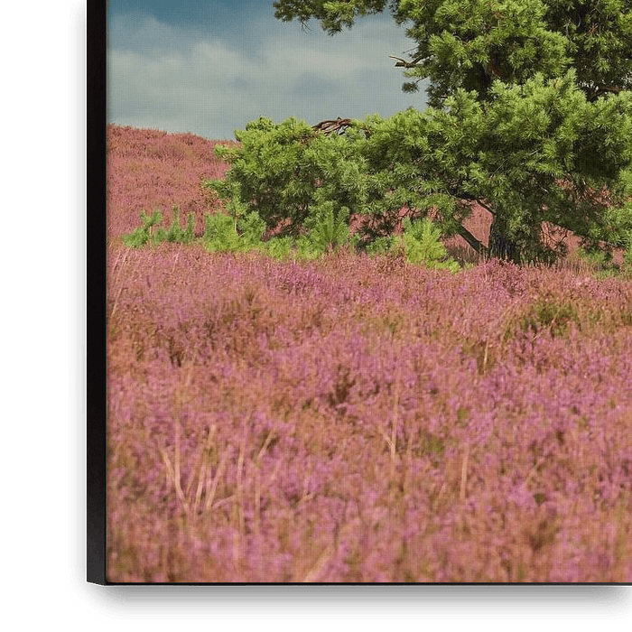 Buy this landscape artwork Blooming Heather plants in Heathland landscape during summer by Sjoerd van der Wal Photography on canvas, ArtFrame, poster and wallpaper, printed on demand in high quality.