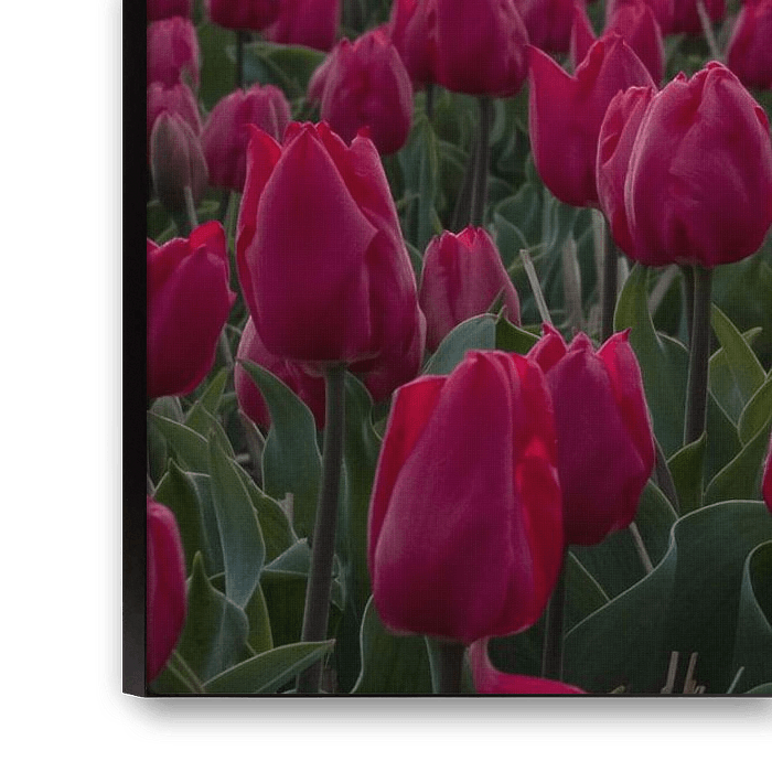 The pink tulips wait patiently for the spring sun. The new day full of aroma, color and sun is about to begin. This was a quiet fresh morning in April, only nature and me, a perfect sunrise.