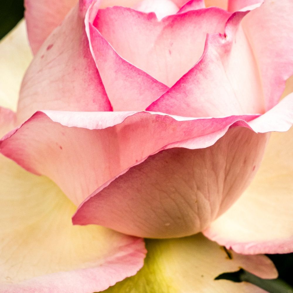 Delicate petals of a pink rose blossom with bokeh
