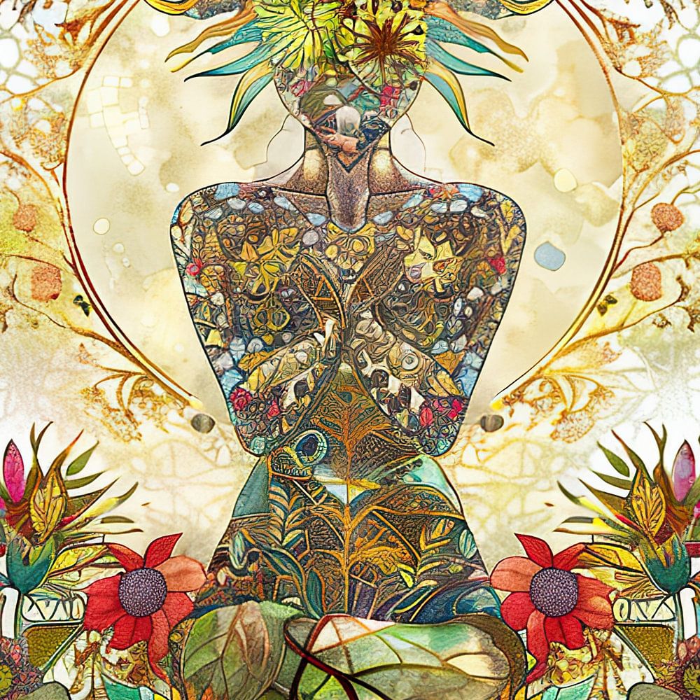 Blossom Vanguard - Flower woman, modern mosaic portrait, colourful woman painting