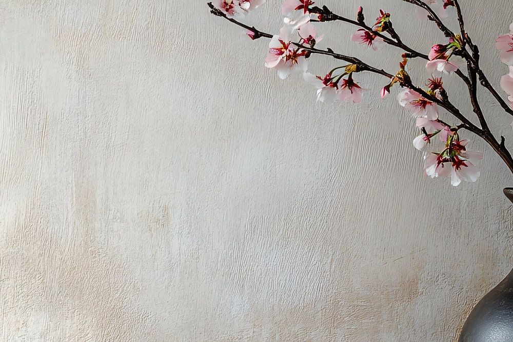 This beautiful design exudes tranquillity and elegance with a simple yet stylish composition. The dark ceramic vase design combined with the delicate blossom branches against a neutral background creates an atmosphere of refined minimalist beauty. This decor piece fits perfectly in a modern or classic living room, hall or office space. With soft tones and a harmonious balance of textures and colours, this artwork offers a timeless look and a serene addition to any interior. Perfect for those looking for a subtle, yet sophisticated atmosphere in their space.