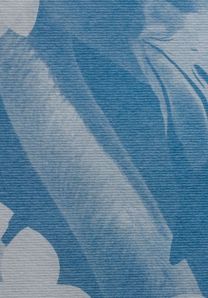 Originally created as a cyanotype on watercolor paper, the artwork merges nature’s quiet rhythm with refined simplicity, revealing soft transitions of Prussian blue that evoke calm and contemplation.