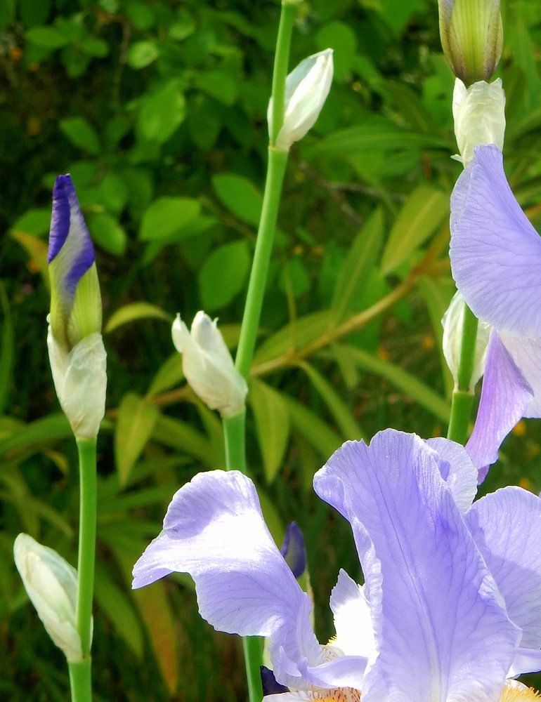 Taking its name from the Greek word for rainbow, the iris is the flower of the Greek Goddess Iris who is the messenger of love. The Iris shown here is a beautiful tall soft blue bearded variety with a yellow beard.