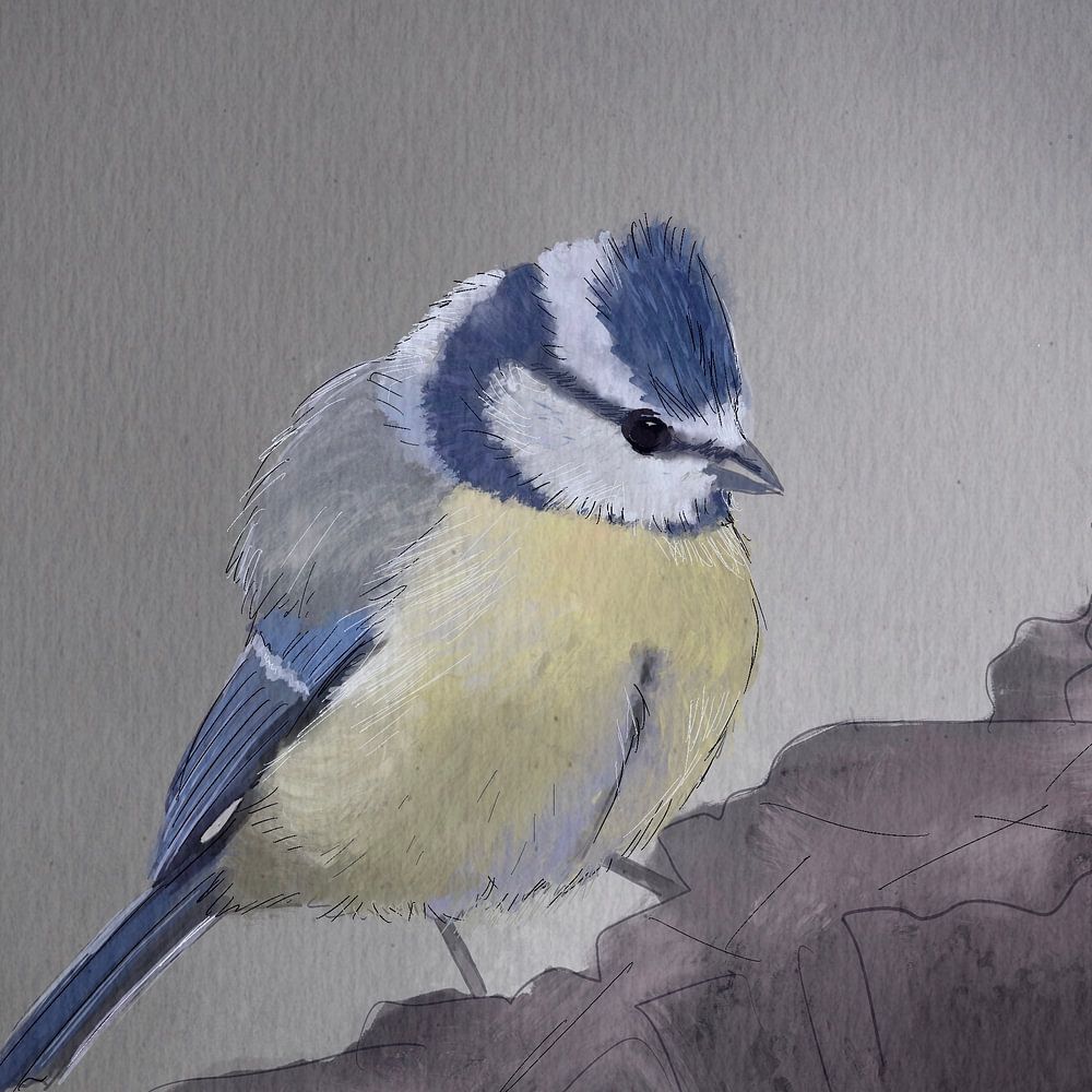 Buy this bird art Blue Tit watercolour by Emmie Van der knokke on canvas, ArtFrame, poster and wallpaper, printed on demand in high quality.