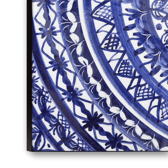 Walking around Lagos, a town in the Algarve region of Portugal I spotted this gorgeous blue and white porcelain plate with a mandala-like pattern. It was attached to a shop's outside wall to advertise the shop's ceramics.