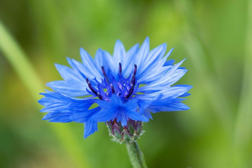 Blue cornflower with green background by Ivonne Fuhren- van de Kerkhof