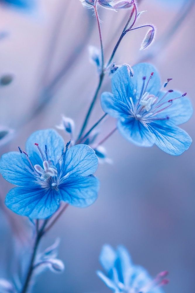In soft blue tones, delicate flowers dance in style in the soft light of dusk. Their delicate petals seem like little dots of sky, while the graceful stems twist gracefully. A poetic interplay of nature that soothes the soul and gives a feeling of calm and harmony.