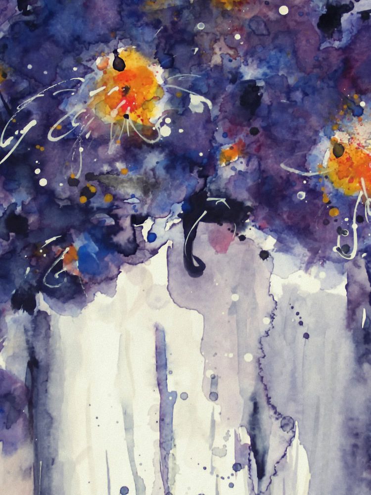 Blue flowers, anemones, poppy, flora, floristry, watercolour, serenity, motivating, decorative, ambience