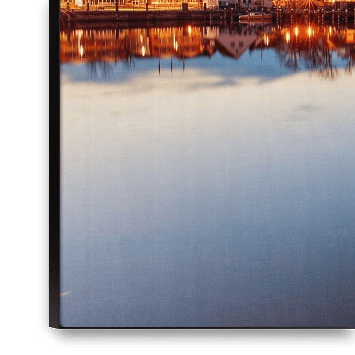 Buy this landscape artwork Blue hour in the harbour of Lauterbach by Rob Boon on canvas, ArtFrame, poster and wallpaper, printed on demand in high quality.