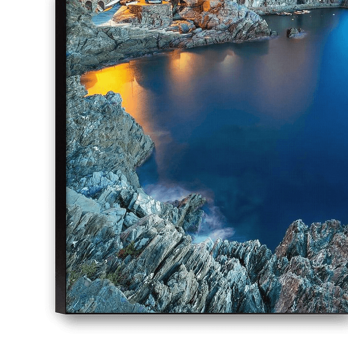 Buy this landscape artwork Blue hour over the fantastic Manarola village in Cinque Terre by Stefano Orazzini on canvas, ArtFrame, poster and wallpaper, printed on demand in high quality.