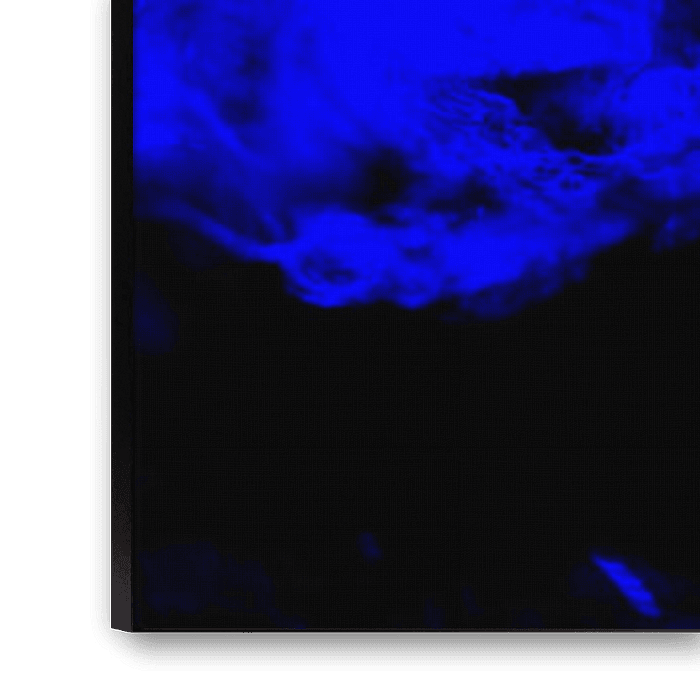 Buy this abstract artwork Blue shapes on a black background by Robrecht Kruft on canvas, ArtFrame, poster and wallpaper, printed on demand in high quality.