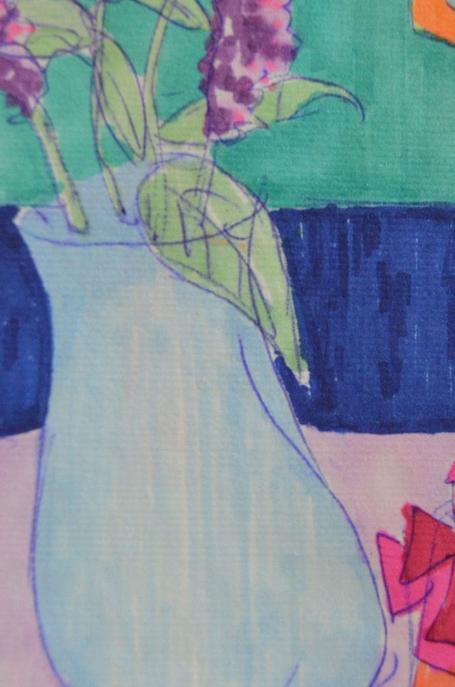 On one of my walks, I picked these lilacs. I tried to translate the scent and intense colour into this artwork. Pink and purple are my favourite colours, you come across them in each of my works. Nowadays, orange is also very popular with me.