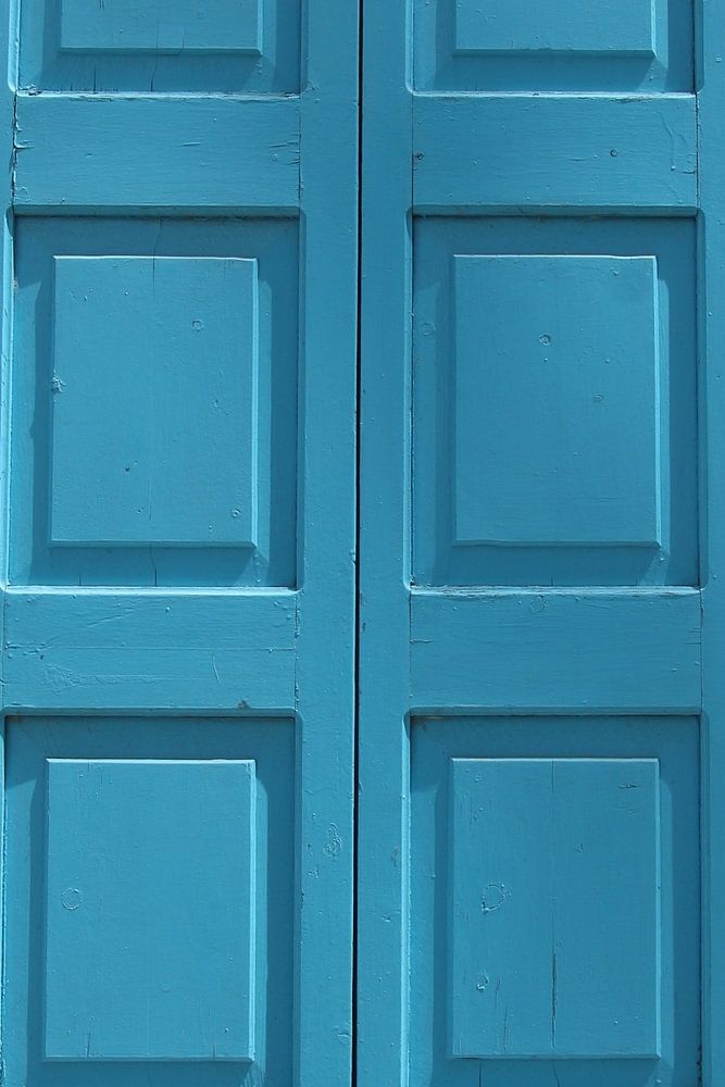 Blue window in white wall. Photo was taken on the Greek island of Nisyros