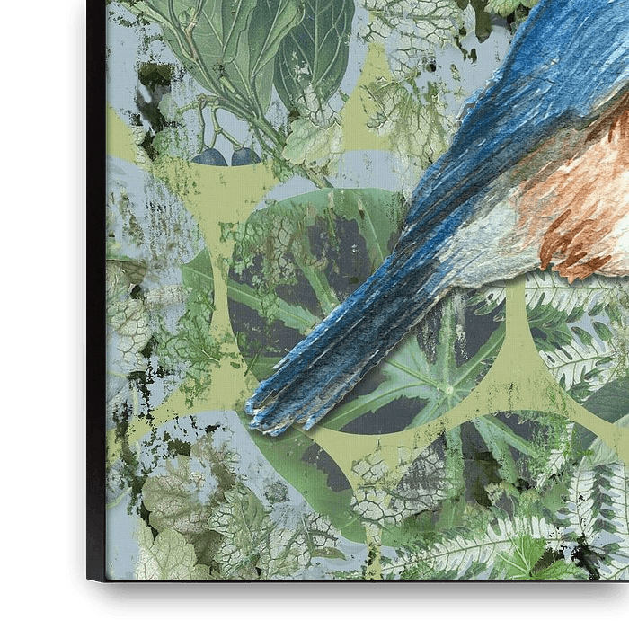 BlueBird painted in Watercolour with patterned background, 'Misty Blue Fern' by b e h i n d t h e g r a y