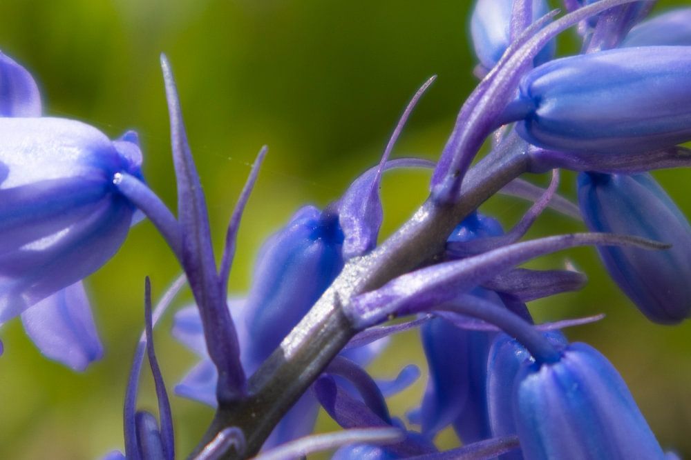 These bluebells in flower photographed during spring. The purple color gives a nice contrast with the green background.