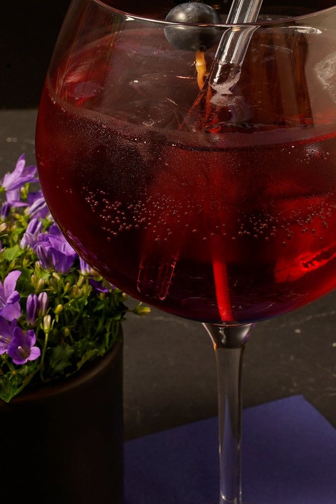 Blueberry gin meeting in water. delicious and fruity cocktails served in glasses