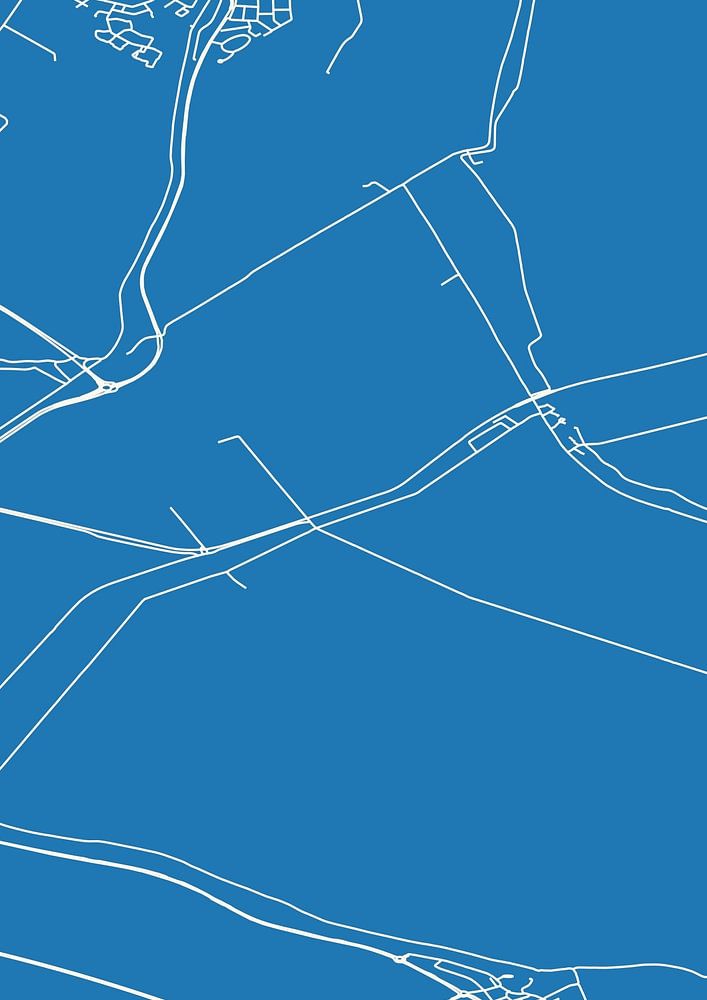 Blueprint of the map / map of the Dutch town Aarlanderveen, located in municipality Alphen aan den Rijn, province of South Holland. The map contains all public roads and the coordinates of the center of Aarlanderveen.