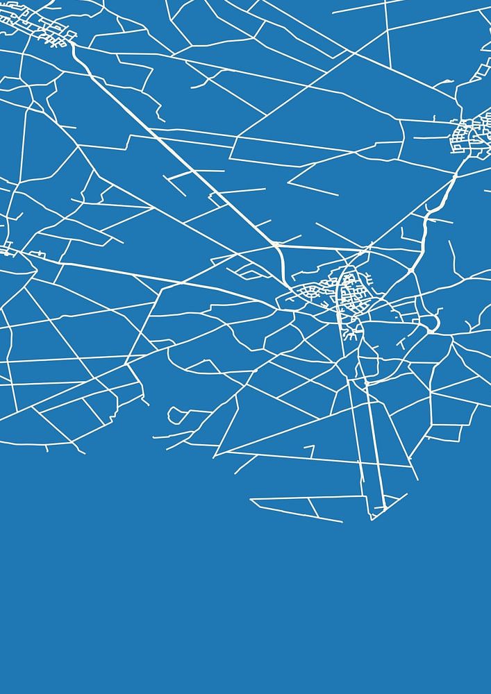 Blueprint of the map / map of the Dutch town of Baarle-Nassau, located in municipality of Baarle-Nassau, province of North Brabant. The map contains all public roads and the coordinates of the center of Baarle-Nassau.