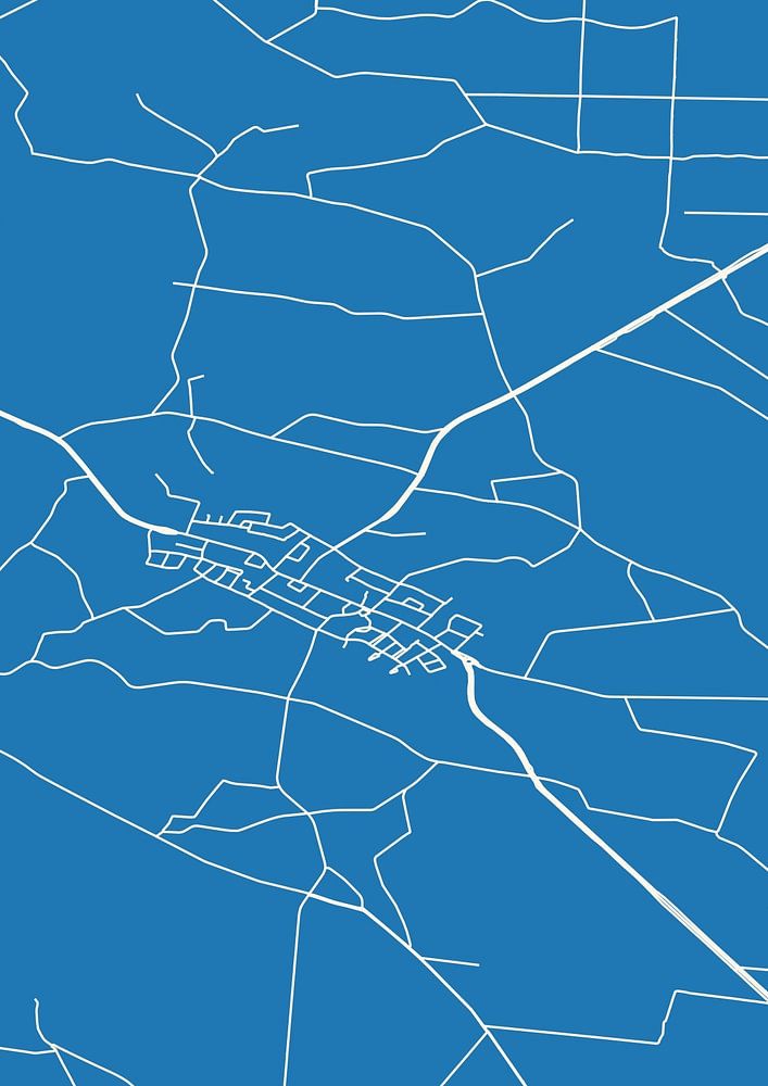 Blueprint of the map / map of the Dutch town of Chaam, located in municipality of Alphen-Chaam, province of North Brabant. The map contains all public roads and the coordinates of the center of Chaam.