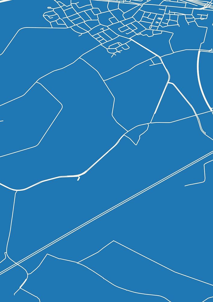 Blueprint of the map / map of the Dutch town Hapert, located in municipality Bladel, province of North Brabant. The map contains all public roads and the coordinates of the center of Hapert.