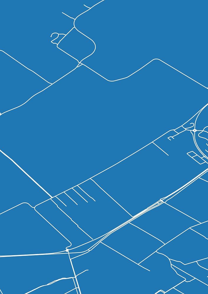 Blueprint of the map / map of the Dutch town Harich, located in municipality De Fryske Marren, province Fryslan. The map contains all public roads and the coordinates of the center of Harich.