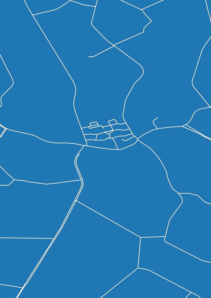 Blueprint of the map / map of the Dutch town of Hulsel, located in municipality of Reusel-DeMierden, province of North Brabant. The map contains all public roads and the coordinates of the center of Hulsel.