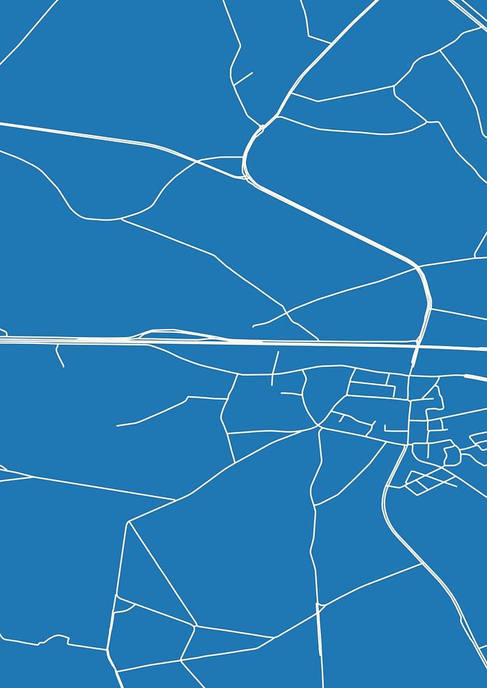 Blueprint of the map / map of the Dutch town of Lierop, located in municipality of Someren, province of North Brabant. The map contains all public roads and the coordinates of the center of Lierop.