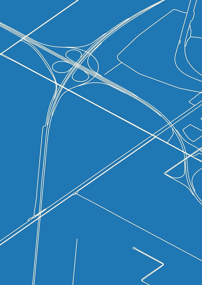 Blueprint of the map / map of the Dutch town Lijnden, located in municipality Haarlemmermeer, province of North Holland. The map includes all public roads and the coordinates of the center of Lijnden.
