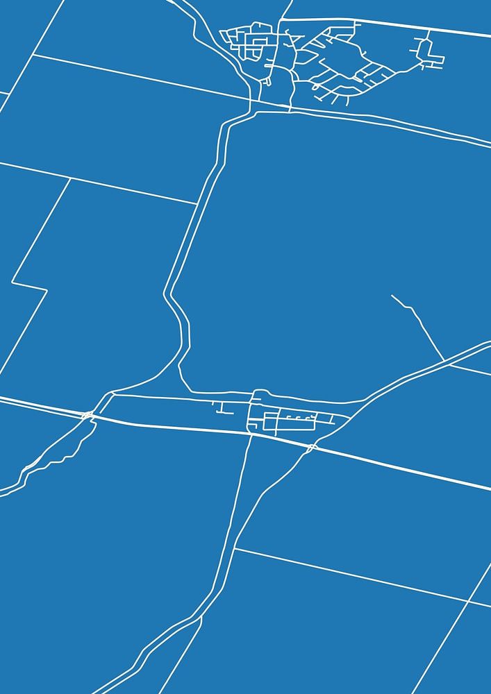 Blueprint of the map / map of the Dutch town of Schermerhorn, located in municipality of Alkmaar, province of North Holland. The map includes all public roads and the coordinates of the center of Schermerhorn.
