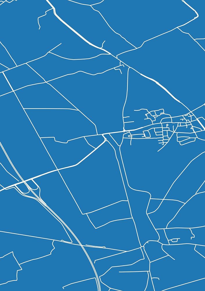 Blueprint of the map / map of the Dutch town Vierlingsbeek, located in the Peel, in municipality Boxmeer, province of North Brabant. The map contains all public roads and the coordinates of the center of Vierlingsbeek.