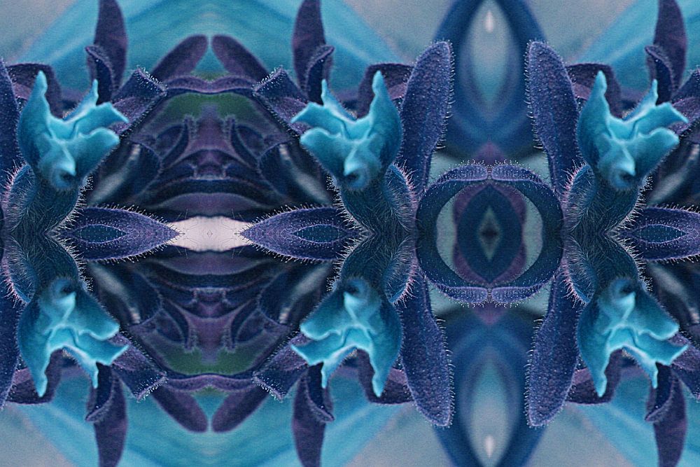 Voor deze creatie heb ik een foto van een bloeiende plant als basisfoto gebruikt. Door deze foto op vele manieren te manipuleren, ben ik tot dit resultaat gekomen. Doordat ik veel verschillende basisfoto's gebruik, komen er veel verrassende creaties uit.