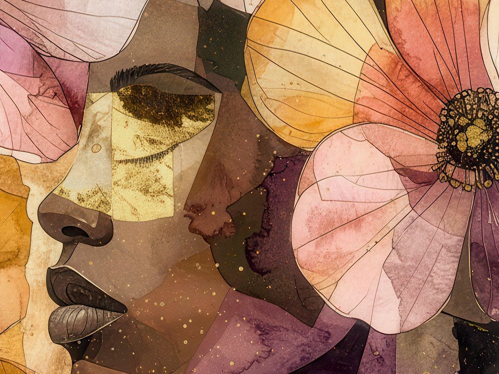 This Mixed media artwork is an enchanting portrait executed in the delicate, fluid style of watercolour effect with a touch of modern abstraction.