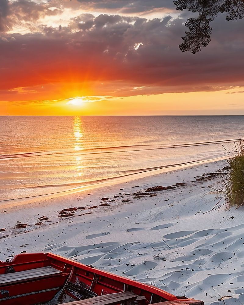Buy this landscape artwork Boat in the evening light by fernlichtsicht on canvas, ArtFrame, poster and wallpaper, printed on demand in high quality.