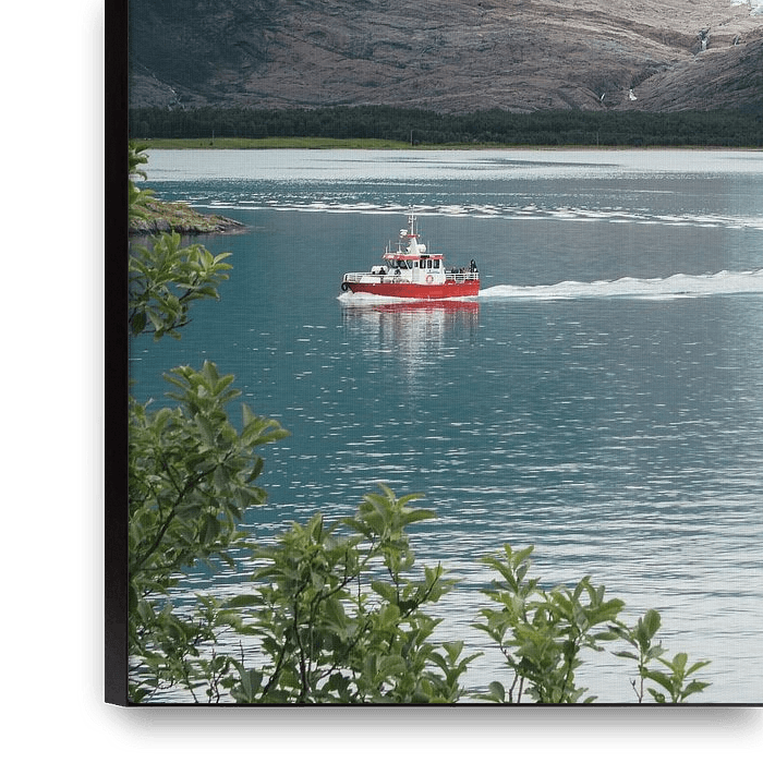 Buy this landscape artwork Boat trip on Glacier Lake by Bart Berendsen on canvas, ArtFrame, poster and wallpaper, printed on demand in high quality.