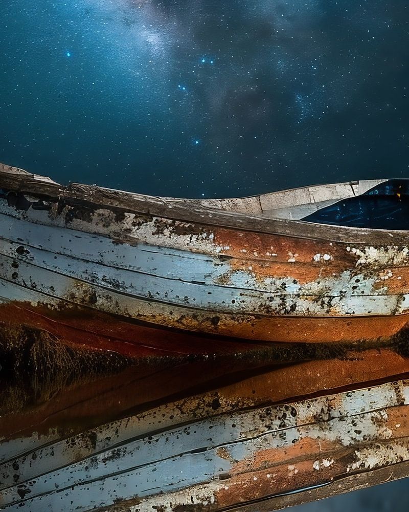 Buy this landscape artwork Boat trip under the stars by fernlichtsicht on canvas, ArtFrame, poster and wallpaper, printed on demand in high quality.