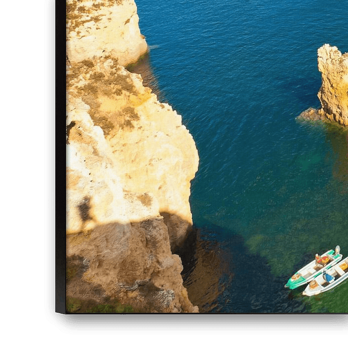 Buy this landscape artwork Boats near Ponta da Piedade at Algarve in Portugal by Werner Dieterich on canvas, ArtFrame, poster and wallpaper, printed on demand in high quality.