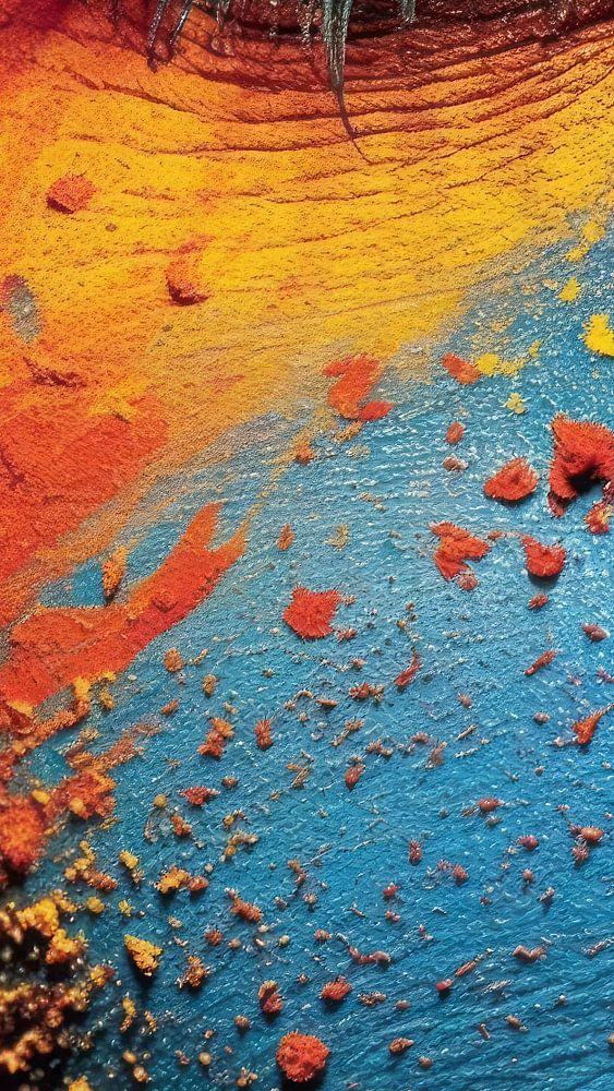 The colours used - blue, turquoise and orange - work harmoniously together to create a vibrant and expressive atmosphere. The deep blue symbolises serenity and tranquillity, while the sparkling turquoise adds a sense of renewal and vitality. The vibrant orange represents passion and energy, adding a touch of dynamism to the whole.