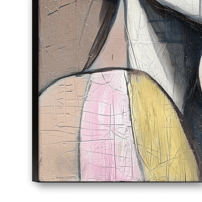Abstract portrait of a woman in matte pastel tones on a coarse weathered wood texture.