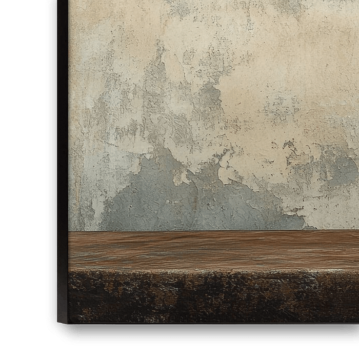A small bonsai tree with almond blossom stands on a rusty, concrete stone. The background is beige and calm, making the white flowers stand out. The flowers look fresh and delicate, as if they have just blossomed. The rusty stone gives a nice contrast to the delicate blossoms, creating an interesting image. The whole arrangement exudes simplicity and tranquillity. It seems as if time stands still for a moment while looking at this still life. The bonsai tree with its fragile flowers brings a piece of nature in a simple but beautiful setting.