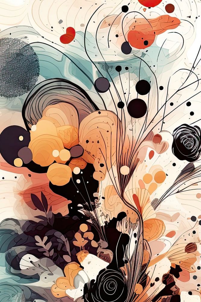 The painting shows an enchanting fusion of botanical elements and boho-inspired art. The combination of botanical beauty and bohemian style creates a harmonious and artistic representation that transports the viewer into a world full of closeness to nature and creative energy.