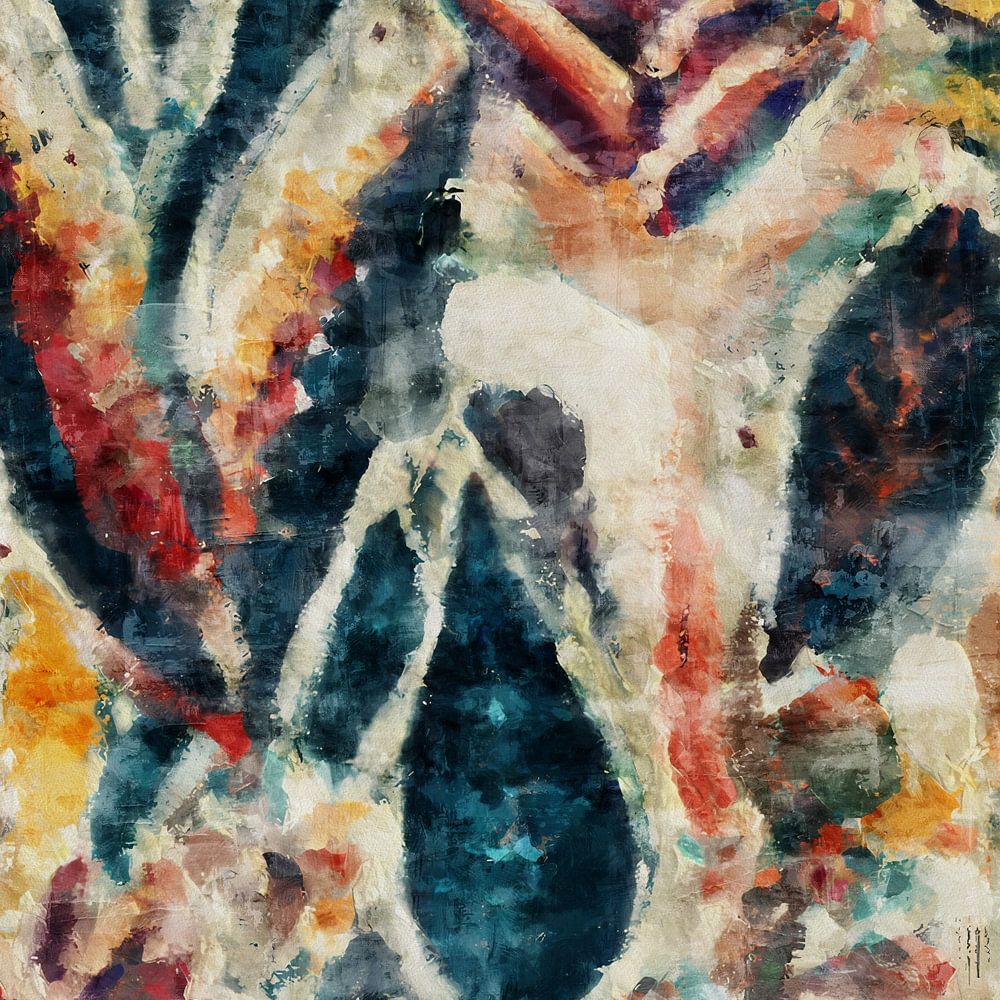 Dress up your interior with this urban grunge botanical brilliance flower power painting. A magical field of flowers and plants in a grunge look of abstract expressionist brushstrokes. Explore the many details up close, or view the work from a distance and have it printed on wallpaper for a delightful hippie retro vibe.