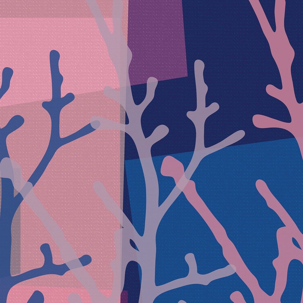 Botanical abstract with branches in pastel blue and red by Dina Dankers