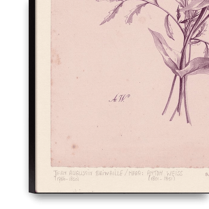 Botanical print by Anton Weiss, edited with a pink tint. The original is a lithograph titled: "various flowers".
