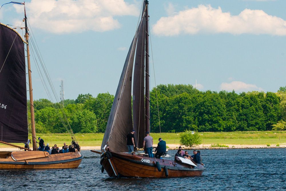 Antieke Botters zeilend voor de kust van Spakenburg in de volle zon