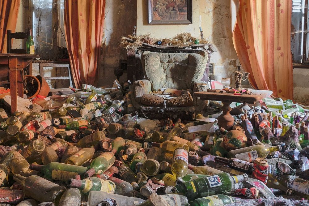 About "Bottle addiction living room in abandoned house"
