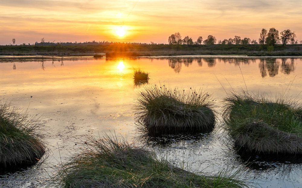 Evening atmosphere in the Brackvenn, High Fens in the Eifel Nature Park, Belgium