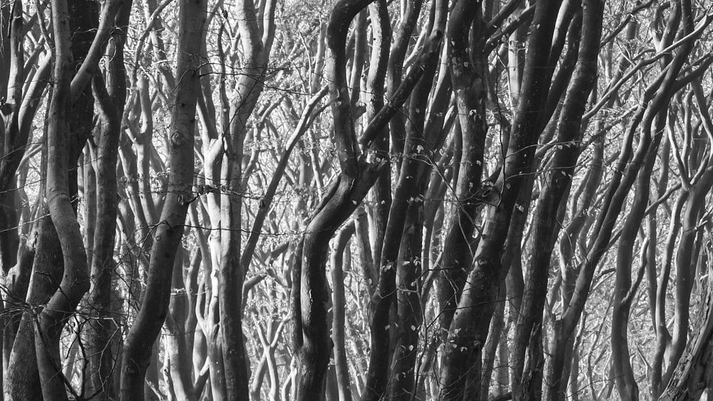 Buy the photo Branches in the forest in black and white by Erwin Pilon on canvas, ArtFrame, poster and wallpaper, printed on demand in high quality.