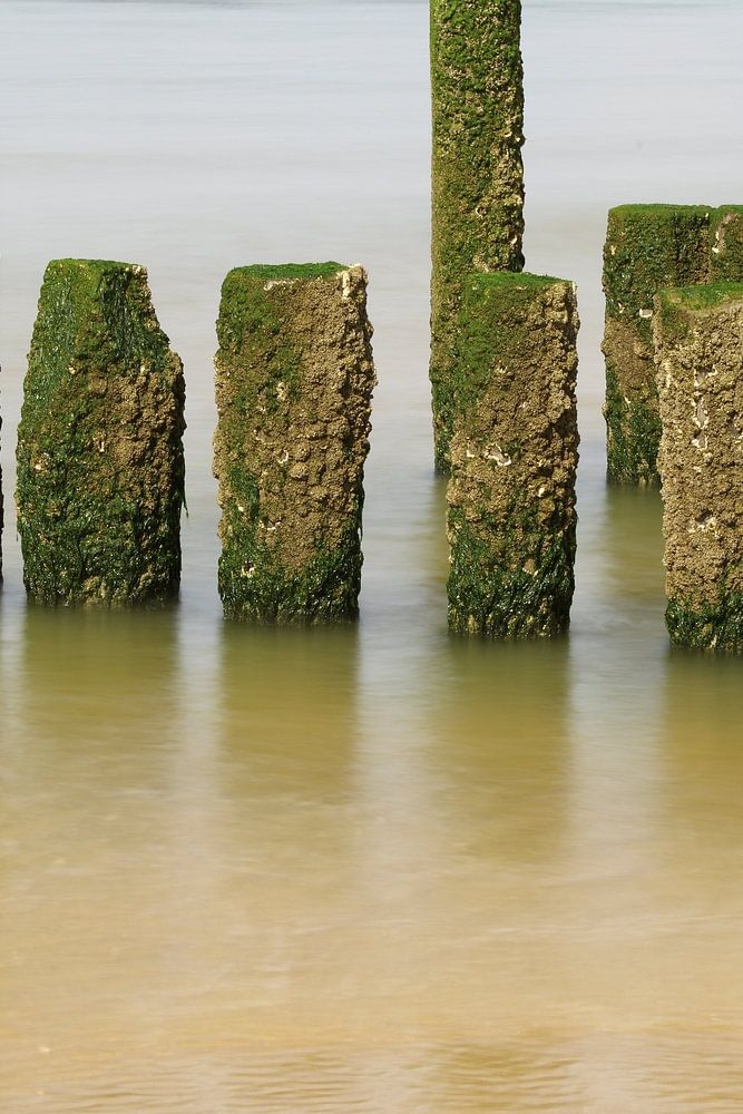 Breakwaters at the Dutch coast. These breakwaters protect beaches and dunes by breaking the waves.