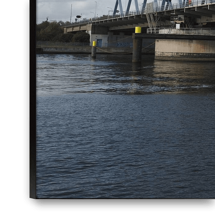 With much perspective, Sluiskil's swing bridge over the Ghent-Terneuzen Canal.