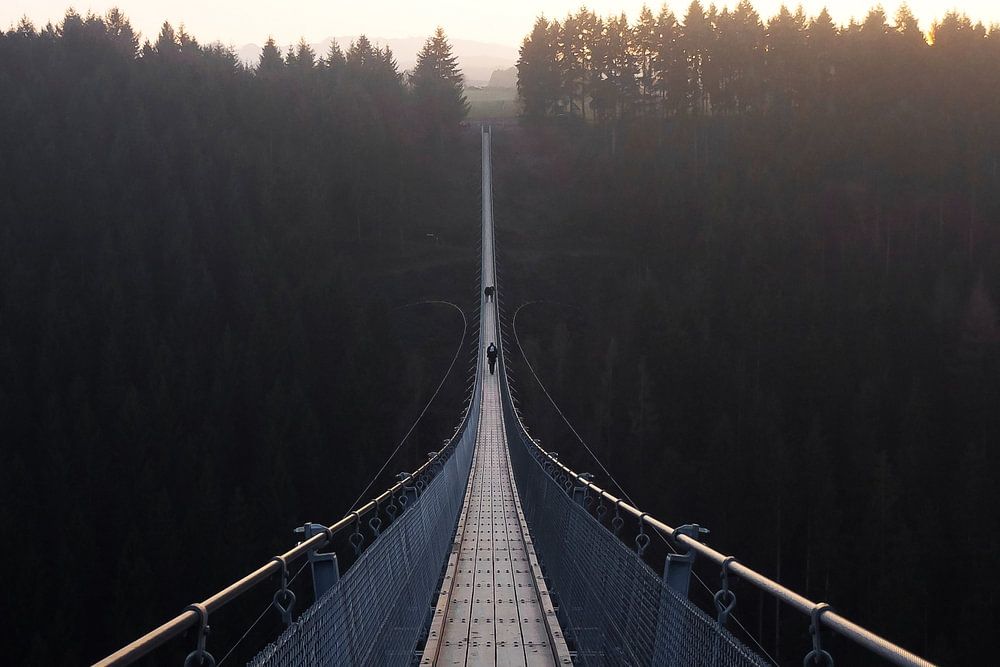 Buy this landscape artwork Bridge in the mountains by Walljar on canvas, ArtFrame, poster and wallpaper, printed on demand in high quality.